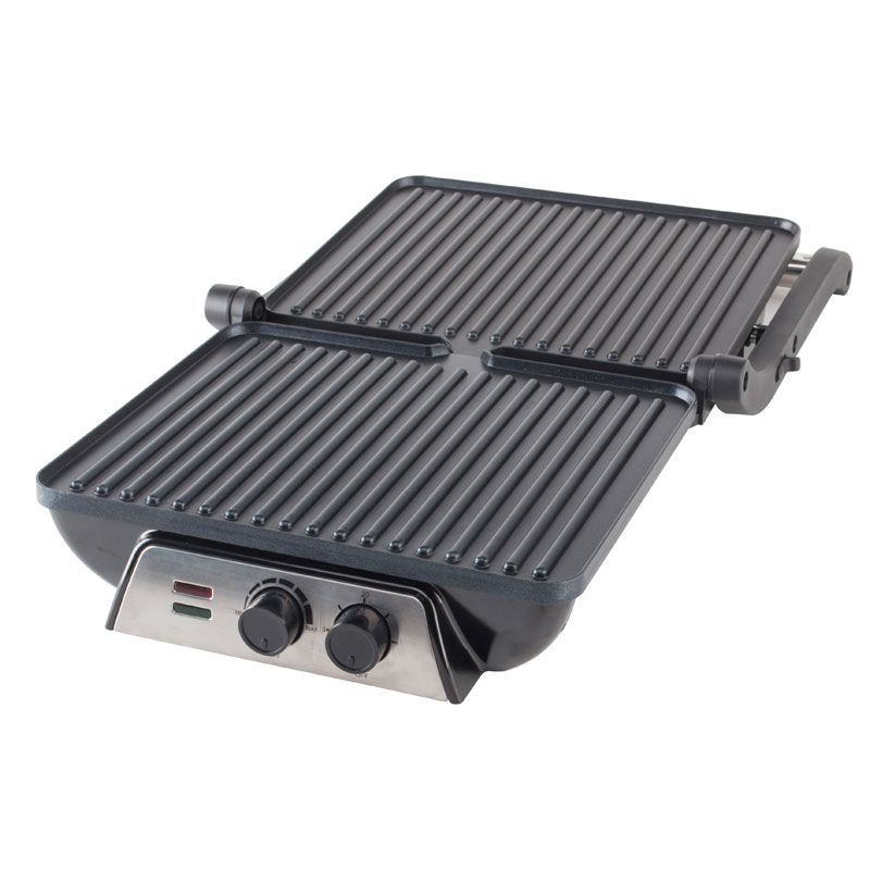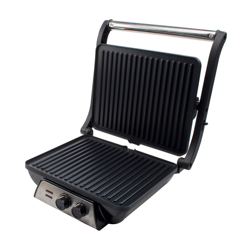 | คุณสมบัติที่สำคัญ | ด้ามจับนิรภัยแบบสัมผัสเย็น, ถาดรองน้ำหยดสำหรับกักเก็บน้ำมันส่วนเกิน, ปุ่มควบคุมอุณหภูมิแบบปรับได้, เคลือบสารกันติดเพื่อทำความสะอาดง่าย, ระบบบานพับแบบลอย (ปรับขนาดของเครื่องปิ้งขนมปัง เนื้อสัตว์ หรือขนมได้โดยอัตโนมัติ), โหมดย่างแบบเปิด 180°C, เปิดเครื่องและไฟพร้อมทำงาน, ขาตั้งกันลื่น |